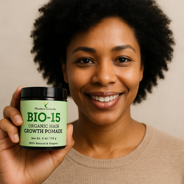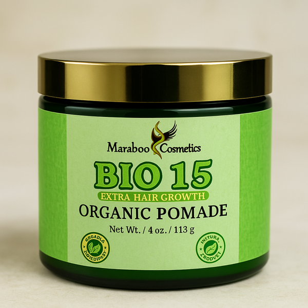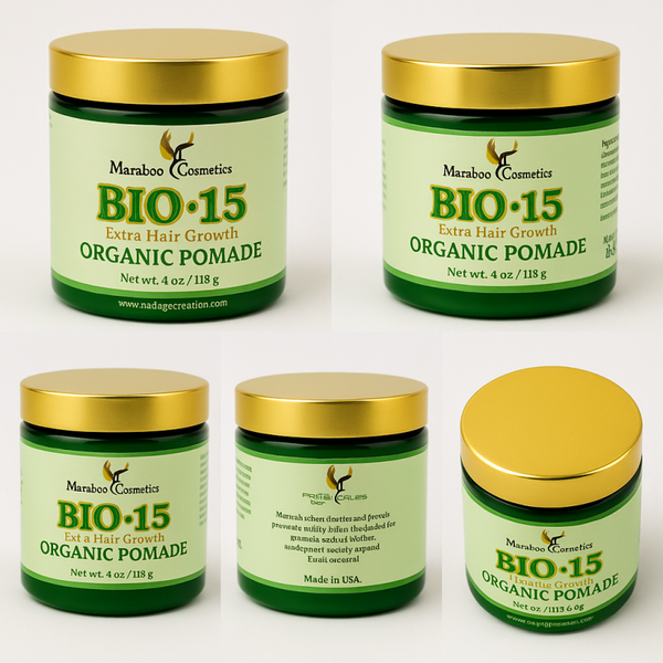 The BIO-15 Organic Pomade is a rich, all-natural hair-growth butter designed to moisturize, strengthen, and protect your hair while promoting long-term growth. Perfect for natural hair, protective styles, locs, twists, braids, and daily scalp care — this pomade delivers deep nourishment without buildup.
