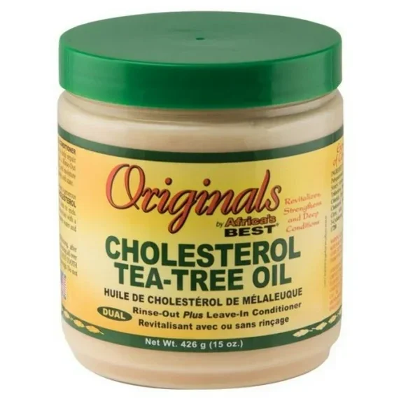 The Originals by Africa's Best Cholesterol Tea-tree Oil Conditioner is infused with natural herbal extracts and botanicals that help to repair and rejuvenate damaged, dry, and over-processed hair. This conditioner can be used either as a rinse-out or as a leave-in treatment. It provides exceptional conditioning and moisture to strengthen hair and restore it to a healthy, manageable, and soft state.tore it to a healthy, manageable, and soft state.