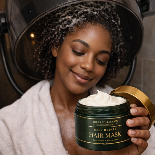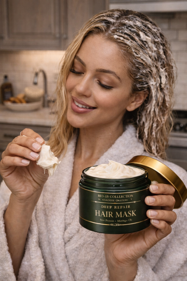 Bio-15 Deep Repair Hair Mask contains nutrient-rich ingredients known to restore and strengthen hair.